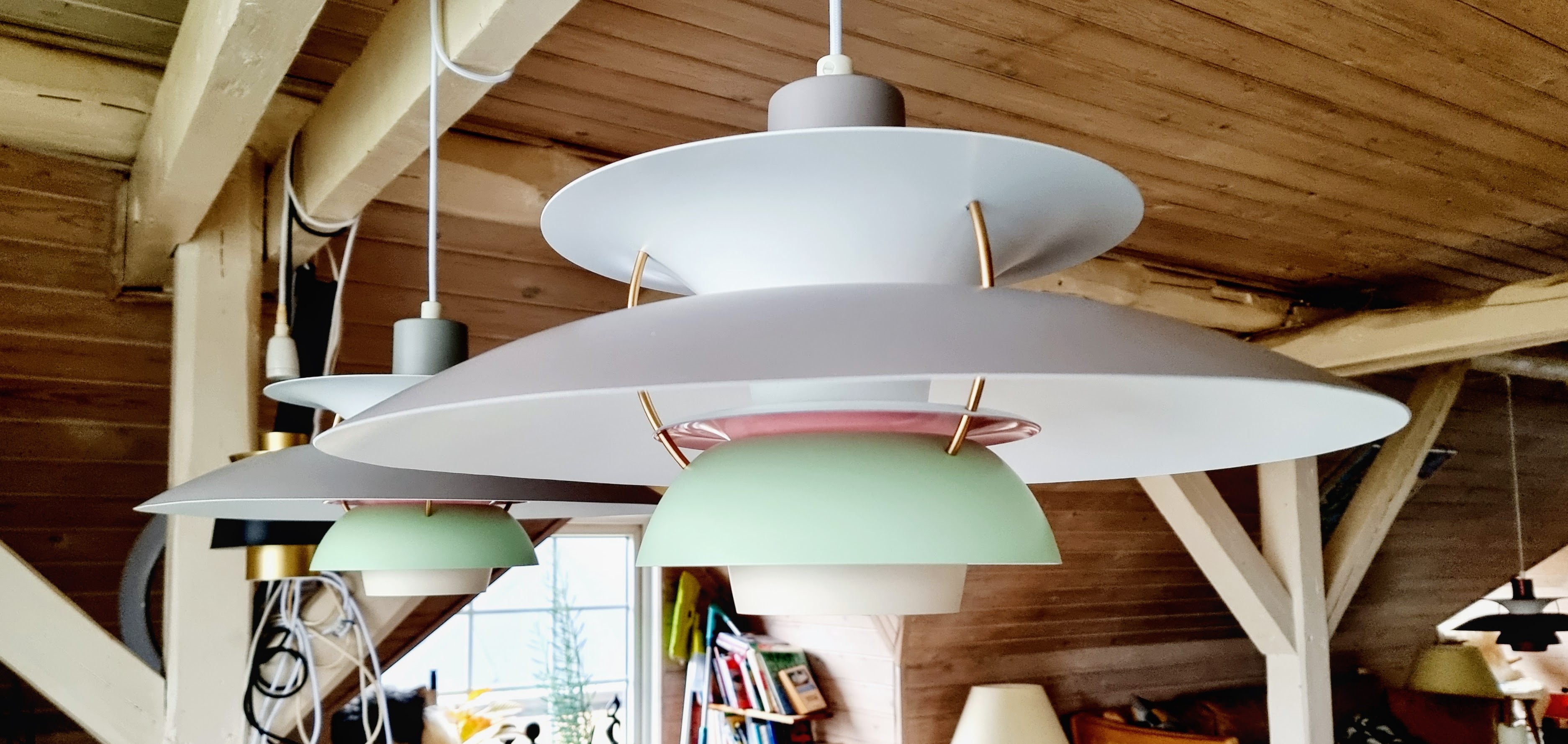Jeg har over 12 års erfaring i at reparere og ny-lakere gamle PH 5 og andre danske/svenske designer lamper. Alle lamper du ser her er gamle brugte lamper der er istandsatte. De er solgte. De har haft et liv inden de blev istandsat og har derfor også nogle få brugsspor. PH-5 lampen har gennemgået mange forandringer igennem årtierne. Så her er der modeller helt fra 1960 èrne til 2000 èrne.